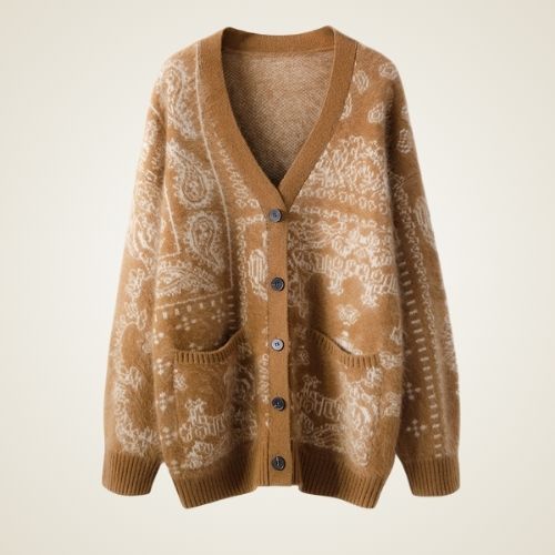 Wrapped in warmth and adorned with intricate jacquard patterns, the Zellis - Buttoned Cashmere Cardigan is where tradition meets modern refinement. The thoughtfully crafted design exudes a timeless charm, featuring a deep V-neck and a structured buttoned front for effortless styling.
