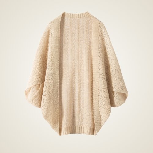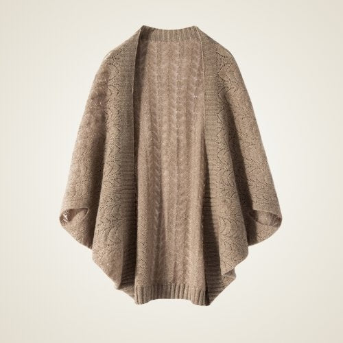 Imagine wrapping yourself in something so light it feels like air, yet warm enough to make you forget the chill outside. The Julevia – Cashmere Lace Cape invites you into this experience with its flowing open-knit design that moves naturally with every step. The delicate lace pattern enhances the silhouette, forming a soft drape that settles gently on the shoulders—never heavy, never restrictive, always refined.