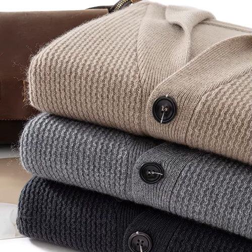 Experience the understated refinement of the Andy - Textured Shawl Collar Cashmere Cardigan. Designed for those who value both style and comfort, this cardigan is made from premium cashmere with a subtle textured knit that exudes sophistication. The shawl collar adds a classic touch, creating an effortlessly polished look that transitions seamlessly from casual to formal settings.