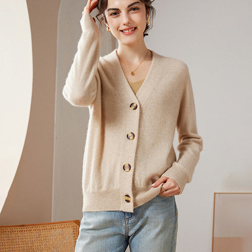 Slip into the effortless elegance of the Avi Cashmere Buttoned Cardigan, where sophistication meets everyday ease. Designed with a deep V-neckline and a fluid silhouette, it drapes beautifully over any outfit, adding an understated touch of refinement. The statement buttons lend a distinctive charm, elevating its classic appeal.