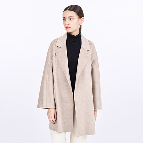 Elliana - Beige Classic Cashmere Coat | The Cashmere Studio