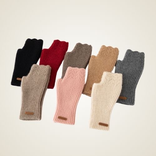 Why choose between warmth and dexterity when you can have both? The Merida - Cashmere Fingerless Gloves offer the best of both worlds, keeping your hands cozy and free to move. The delicate cable-knit detail adds a refined touch, while the scalloped trim enhances their timeless charm. Whether you're working, texting, or enjoying a winter stroll, these gloves bring a sense of effortless sophistication to every moment.