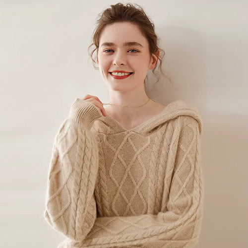 Indulge in effortless elegance with the Estelle - Cable Knit Cashmere Hoodie. Crafted from the finest cashmere, this piece blends luxury with versatility. The intricate cable-knit design brings texture and sophistication, while its relaxed silhouette ensures an easygoing yet polished aesthetic. The timeless hood adds a modern touch to the classic knit, creating a perfect harmony between comfort and style.