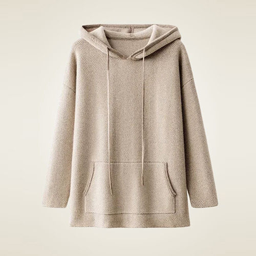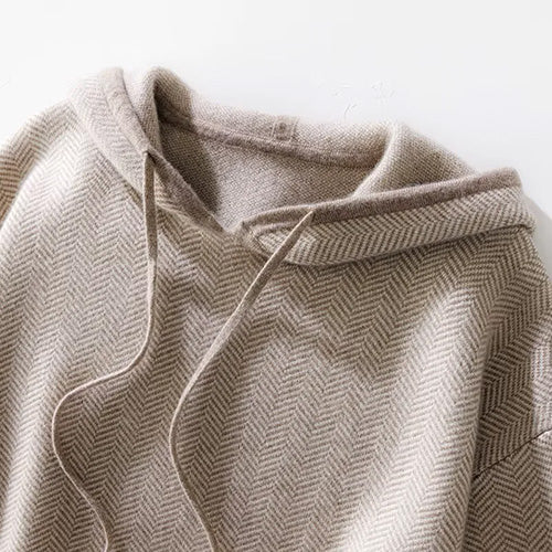Experience unmatched elegance with the Haley - Herringbone Cashmere Hoodie. Crafted from premium cashmere, it features a delicate herringbone pattern that enhances its understated elegance. The relaxed silhouette and oversized hood provide a cozy, contemporary look that’s perfect for any season.