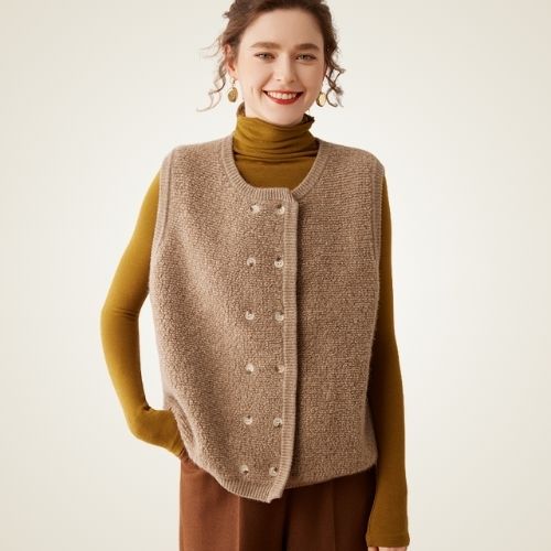 Think of those transitional moments—between meetings, between seasons, between moods—when you want just enough warmth without the weight. The Kelyndra - Textured Cashmere Vest steps in gracefully. Its textured boucle knit catches the light beautifully, giving dimension to its minimalist shape. Finished with subtle ribbing and a soft round neckline, this piece is effortless to wear and universally flattering.