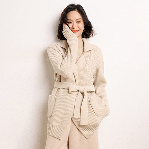 Some pieces redefine comfort and elegance effortlessly—like the Elda Belted Cashmere Cardigan. Crafted from the finest cashmere, its plush knit wraps you in warmth while maintaining a fluid, refined silhouette. The self-tie belt enhances the shape, allowing you to cinch the waist for a polished look or wear it open for relaxed layering.