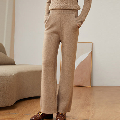 Slip into effortless elegance with the Aiana - Classic Cashmere Pants, a timeless essential for those who seek both sophistication and comfort. Designed with a flowing wide-leg silhouette and a high-rise elastic waistband, these pants create an elongated and graceful look that flatters every movement. The plush cashmere fabric envelops you in warmth, making them an indulgent choice for cooler days.