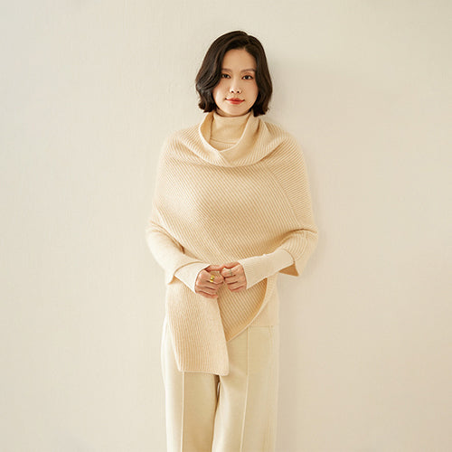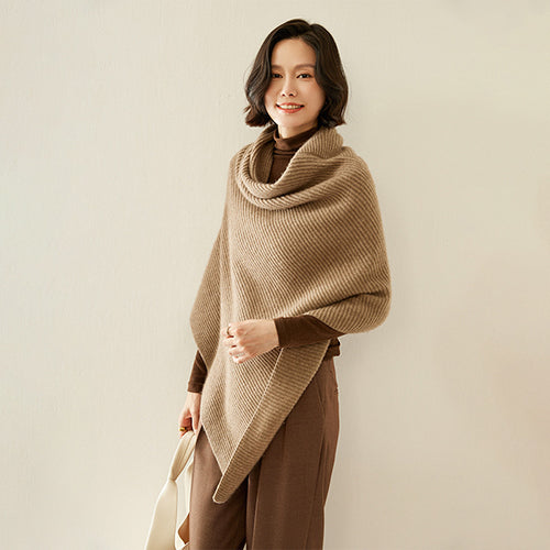 Some pieces redefine comfort and elegance, and the Ellina - Ribbed Cashmere Poncho does exactly that. With its soft cowl neck that envelops you in warmth and an asymmetrical hem that adds graceful movement, this poncho is the perfect balance between structure and fluidity. Whether layered over a fitted turtleneck or worn alone, it effortlessly enhances your silhouette with a timeless sophistication.