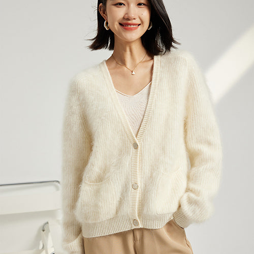Slip into pure indulgence with the Maelis - Ribbed Cashmere Cardigan—an effortlessly elegant piece designed for ultimate comfort. Its ribbed texture enhances the plush feel of fine cashmere, creating a gentle drape that flatters every silhouette. The deep V-neckline and marbled buttons add a sophisticated touch, making it a timeless staple for refined layering.