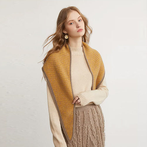 Experience elevated style with the Kendall - Two Tone Cashmere Scarf. This luxurious accessory showcases a ribbed texture and contrasting edges, blending modern design with timeless elegance. Crafted from premium cashmere, it offers unparalleled softness and warmth while remaining lightweight and versatile. The two-tone detail creates a sophisticated contrast, perfect for enhancing your winter wardrobe.
