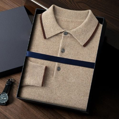 Refined yet relaxed, the Clifford - Cashmere Polo Sweater offers effortless sophistication. The soft knit fabric provides lightweight warmth, while the contrast-trim collar adds a subtle touch of distinction. Featuring a classic three-button placket and ribbed edges, it’s a versatile piece designed for timeless style.