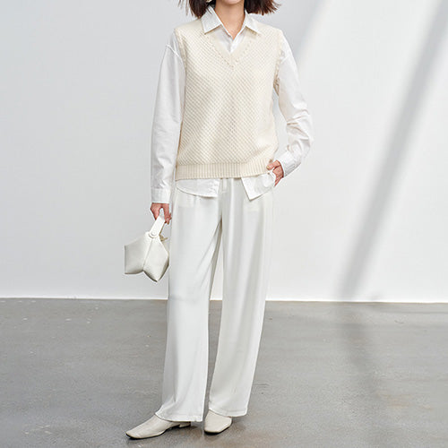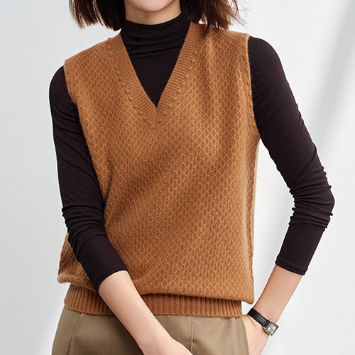The Iona - Textured Cashmere Vest redefines layering with its sophisticated honeycomb knit pattern and refined V-neckline. This piece brings effortless elegance to your wardrobe, offering a classic look that adapts to both casual and formal styles. Its clean lines and intricate texture make it a standout piece for layering during cooler seasons.