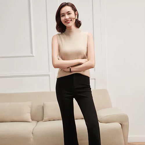 The Oriana - Mock Neck Cashmere Vest invites you to embrace simplicity without sacrificing elegance. Its streamlined silhouette and high neckline create a polished look that feels both timeless and modern. Perfect for layering under jackets or worn on its own, this vest exudes understated charm, making it a versatile choice for any season.