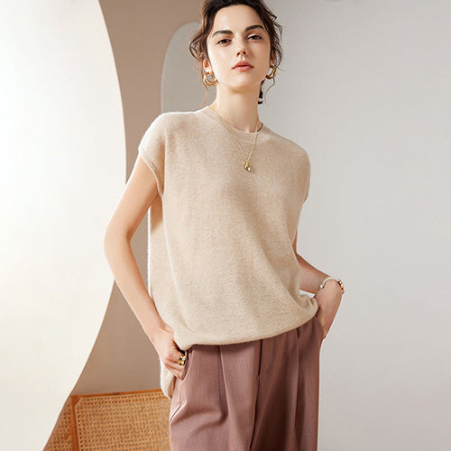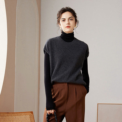 Wrap yourself in understated elegance with the Jayda - Classic Cashmere Vest-Top. Its minimalist design paired with a flowing hemline creates a silhouette that flatters all figures. Perfect for those seeking an essential piece that combines style and comfort, this versatile top can be worn alone or layered for added warmth. The finely knit cashmere ensures a luxurious softness that feels light and breathable, making it ideal for any occasion.