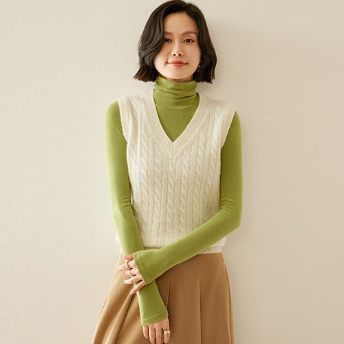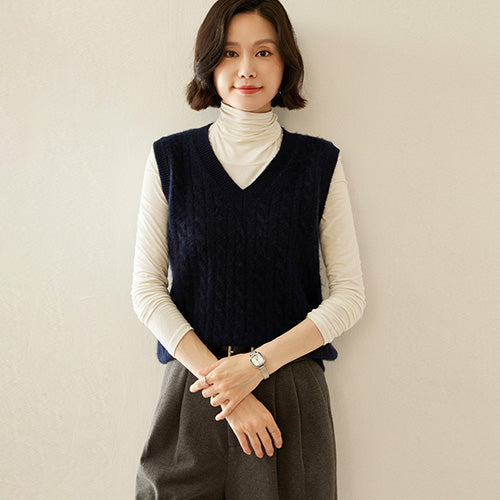 Wrap yourself in elegance with the Marlene - Cable-Knit Cashmere Vest. Featuring a classic V-neckline and a beautifully intricate cable-knit design, this piece is crafted to perfection. Its premium cashmere composition ensures an unmatched softness, offering both warmth and breathability, ideal for any season.