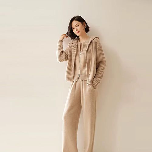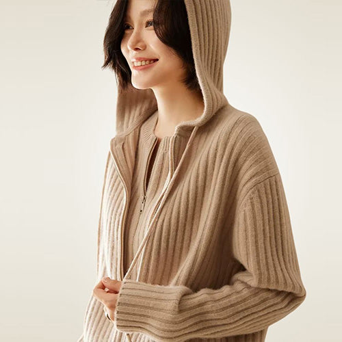Aspen - Ribbed Cashmere Hoodie Cardigan