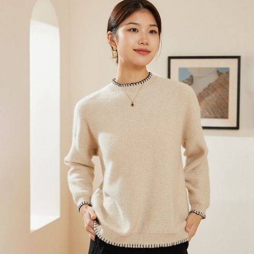 Think effortless elegance with a hint of the unexpected—that's the essence of the Narelle - Cashmere Sweater. From the first touch, you’ll notice its exceptional softness, a signature trait of high-grade cashmere. But it’s the subtle contrast stitching at the collar, hem, and cuffs that makes this piece stand out quietly, adding a handcrafted charm to a timeless silhouette.