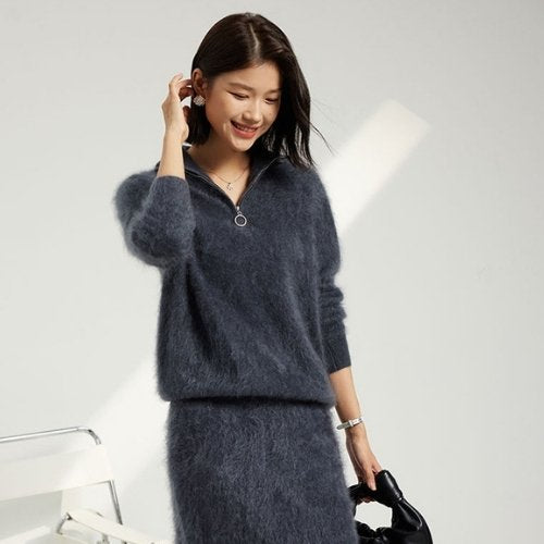 Have you ever slipped into a sweater that instantly makes you feel at ease? The Haralyn – Half Zip Brushed Cashmere Sweater is designed for those moments. From the first touch, its brushed cashmere texture delivers an enveloping softness that feels comforting yet refined. The half-zip neckline introduces a modern edge, letting you adjust the opening to suit your mood—fully zipped for cozy warmth or slightly open for a relaxed, elegant look. Its lightweight construction offers insulation without heaviness, creating a silhouette that feels fluid, natural, and easy to wear throughout the day.