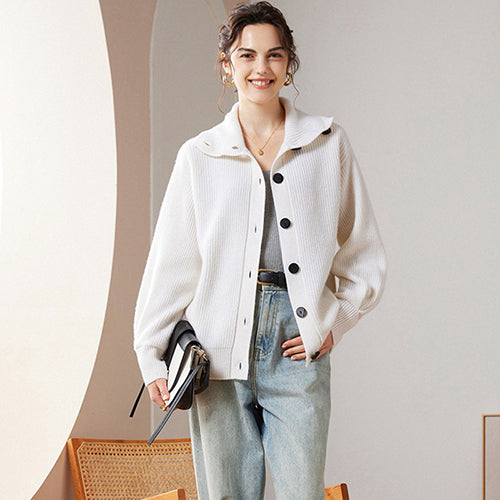 Elevate your cold-weather style with the Norella - High-Neck Wide-Ribbed Cashmere Sweater, a perfect balance of warmth and sophistication. The structured high-neck collar and wide-ribbed knit create a modern silhouette, offering a polished yet relaxed fit. Thoughtfully designed with bold contrast buttons, this piece blends effortless elegance with contemporary charm.