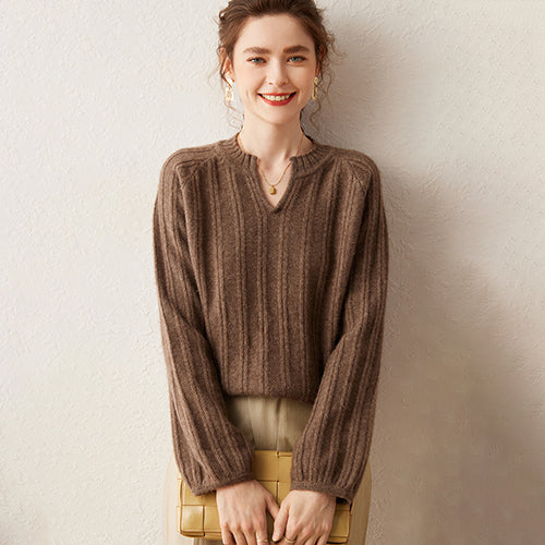 There’s something quietly powerful about clothing that feels this good. The Arelia - Ribbed Cashmere Sweater invites you to slow down and settle into softness. Its wide ribbed knit elongates the silhouette without clinging, while the notched neckline frames the collarbone with a subtle elegance. It’s designed to be your go-to favorite, the kind of sweater that feels just as right for a meeting as it does for a weekend coffee.