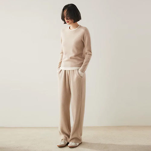 The Rachel - Double Crewneck Cashmere Sweater is the epitome of minimalist elegance. Crafted from pure cashmere, it offers exceptional softness and comfort, making it ideal for cooler days or casual evenings. Featuring a refined crew neckline and clean lines, this sweater adds a touch of sophistication to any wardrobe. Lightweight and breathable, it’s perfect for layering or wearing on its own.