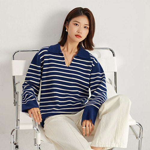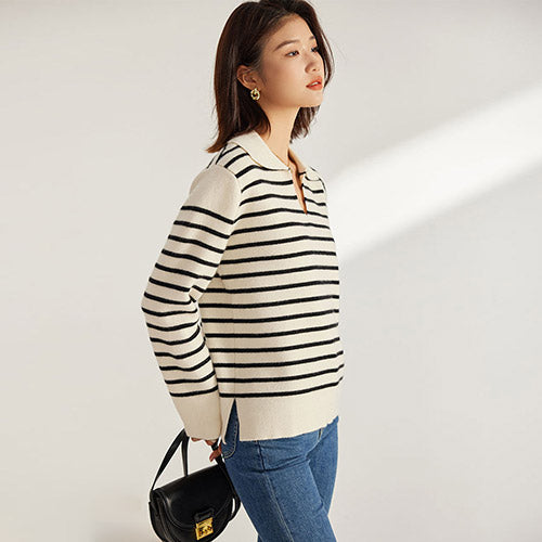 Looking for a piece that feels as effortless as your favorite morning ritual? The Nelyssa - Striped Cashmere Sweater brings that ease with a timeless striped design and open collar that evokes the charm of a coastal escape. Its subtle nautical influence is elevated by the unmatched softness of pure cashmere—light, warm, and irresistibly gentle on the skin.
