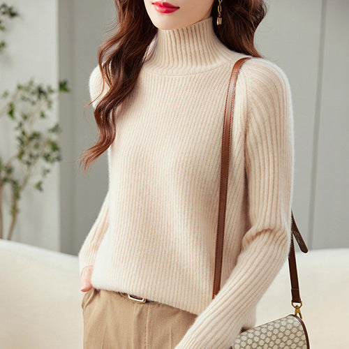Liora - Ribbed Cashmere Turtleneck is a masterclass in understated luxury. Its ribbed texture creates a visual elegance that feels as good as it looks. Designed with a high neckline, it provides effortless warmth while maintaining a sleek and refined silhouette. Whether you’re heading to a meeting or enjoying a quiet weekend, this sweater adapts to your lifestyle with ease.