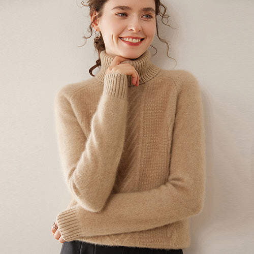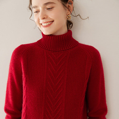 Wrap yourself in the luxurious softness of the Lucinda - Textured Cashmere Turtleneck, a piece designed to combine elegance and comfort effortlessly. Its delicate chevron pattern on the front adds an artistic touch, elevating the classic turtleneck to a statement of sophistication. The premium cashmere fabric ensures exceptional warmth and a buttery-soft feel, making it an ideal companion for the colder months.