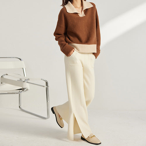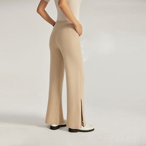 These wide-leg Winry - Cashmere Slits Pants redefine modern elegance with their fluid silhouette and thoughtful detailing. The high-waisted design provides a flattering fit, while the tailored slits at the hem add a contemporary touch, allowing effortless movement. Whether you're elevating your everyday wardrobe or seeking a refined lounge look, these pants transition seamlessly between occasions.