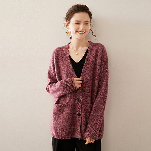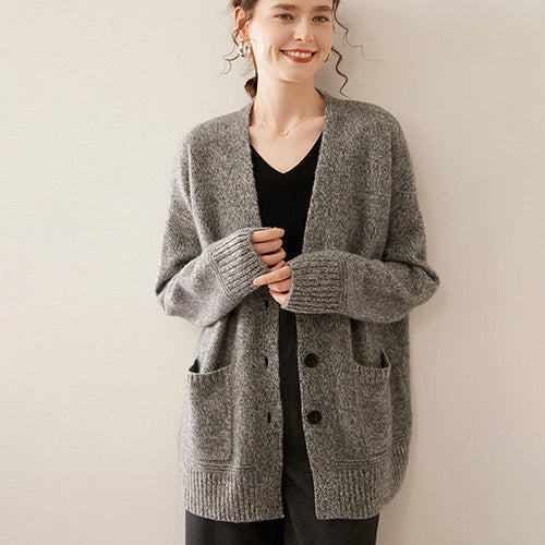 What if your favorite cardigan could be both effortlessly chic and incredibly comfortable? The Miris - Textured Knit Cashmere Cardigan is designed for everyday ease, featuring a deep V-neckline and a relaxed silhouette that drapes beautifully. The heathered texture adds depth, making it the perfect companion for layering through the seasons.