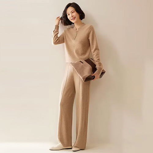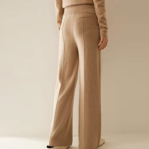 Elevate your comfort and style with the Kaila - Wide Leg Cashmere Pants, where elegance meets everyday ease. Designed for those who appreciate refined luxury, these pants are crafted from premium cashmere, offering a softness that feels like a gentle embrace. The wide-leg silhouette and subtle front seams create a beautifully elongated look, effortlessly flattering your figure while ensuring all-day comfort.