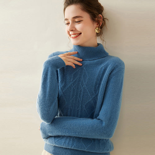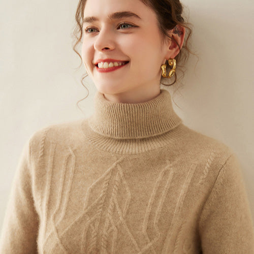 Wrap yourself in the luxury of 100% premium cashmere with the exquisitely Oriana - Cable-Knit Cashmere Turtleneck. The intricate cable-knit detailing brings texture and sophistication, while the soft, high neckline delivers both elegance and warmth. A perfect blend of timeless style and modern comfort, it elevates your wardrobe effortlessly.