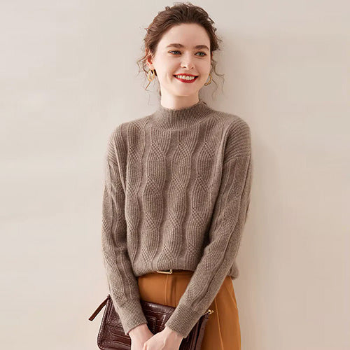 The Sophie Mock Neck Cashmere Sweater combines soft sophistication with a modern design. The pattern adds texture and a touch of boldness, making this sweater more than just an everyday essential. Crafted from premium cashmere, it feels as luxurious as it looks, offering warmth without bulk. The mock neck provides a polished appearance while ensuring maximum comfort for all-day wear.